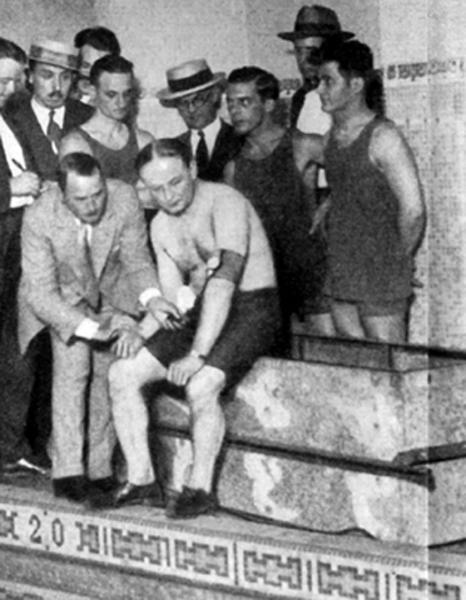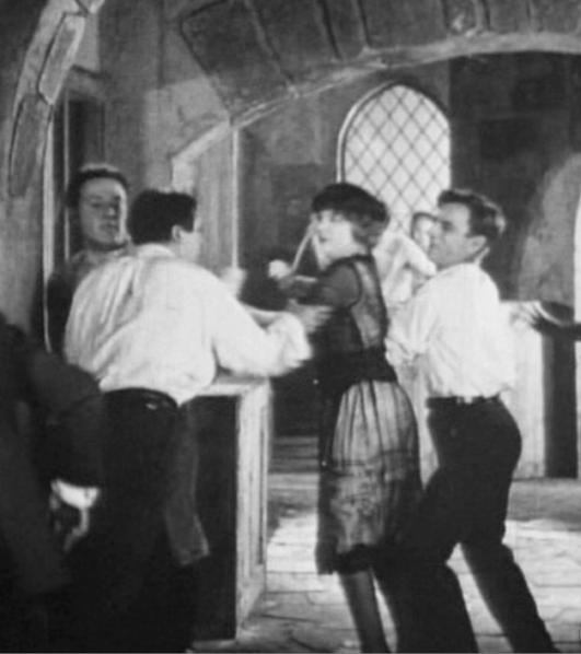 Houdini and Frank Williamson play tug of war with Gladys Leslie.