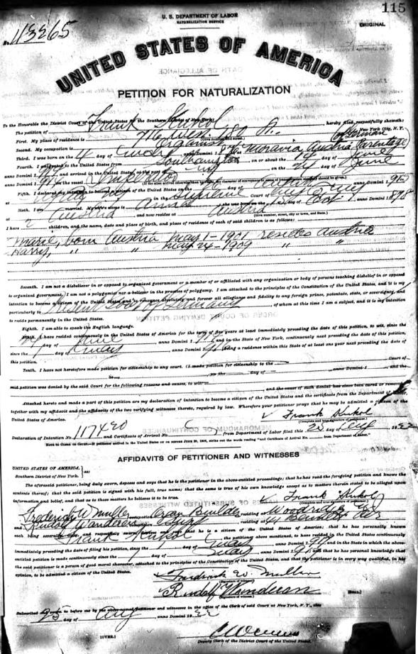 Frank Kukol's Petition for Naturalization August 25, 1922